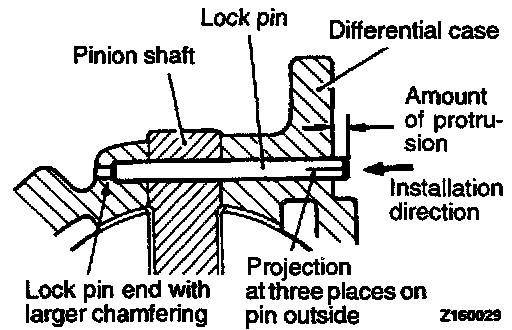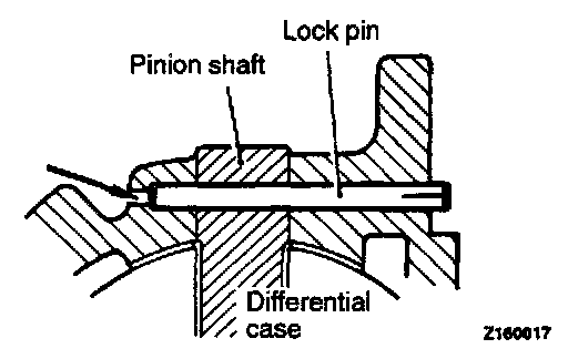 1. Align the pinion shaft lock pin hole with the case lock pin hole and insert the new lock pin.