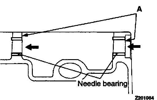 1. Install the needle bearing flush with the surface A of the clutch housing using a socket wrench.