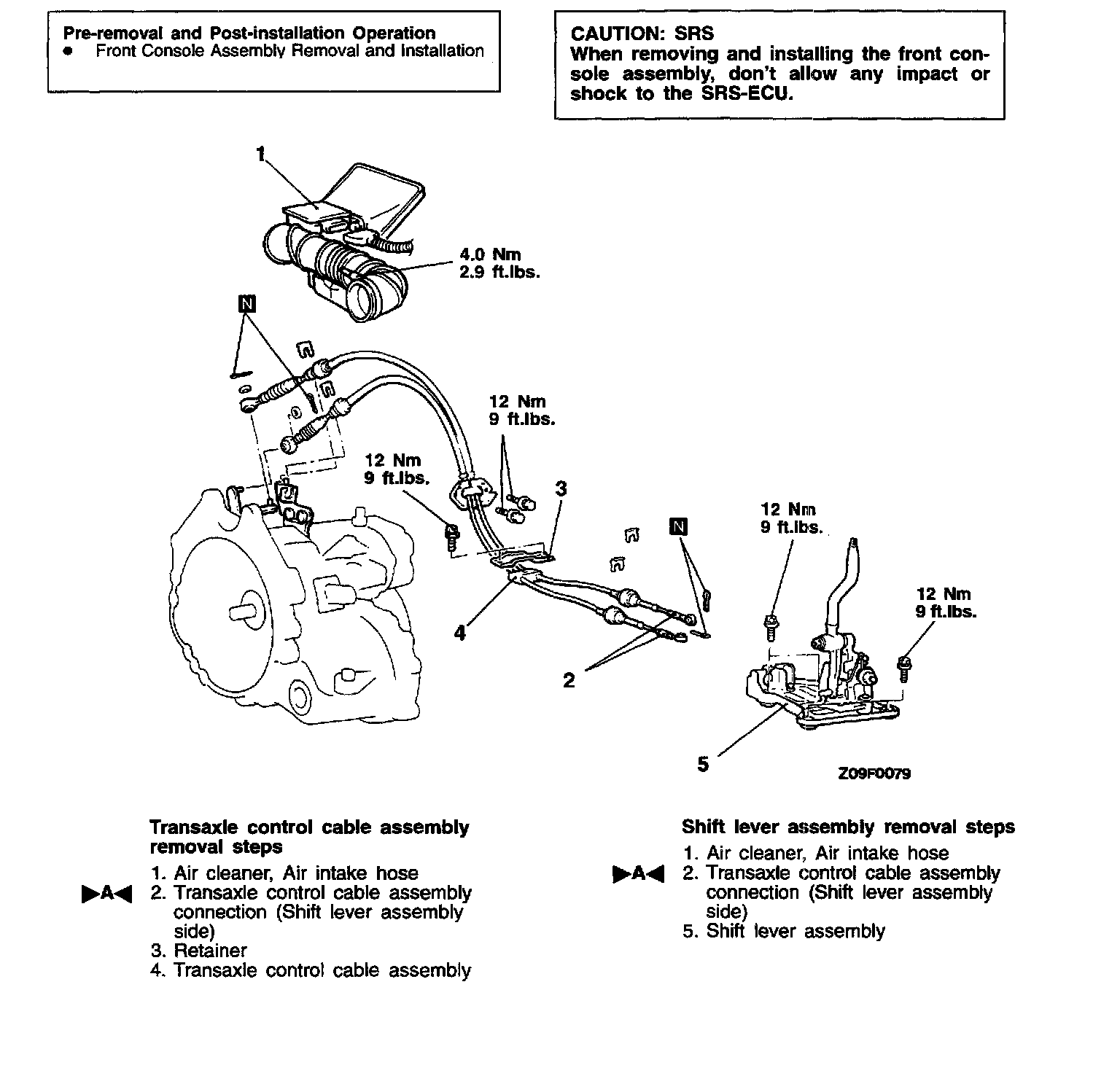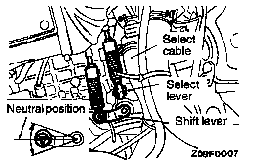 NOTE: The select lever will be set to the neutral position when the transaxle shift lever is moved to the neutral position.