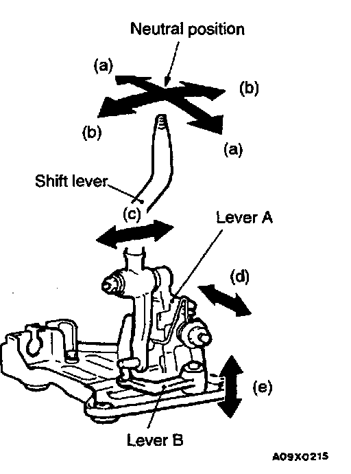 2. Move the shift lever in the selecting direction (b), and check to see that it is returned smoothly to the neutral position by the return spring when released.