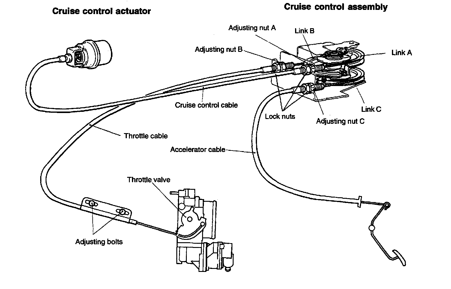 7. Check the free travel state of the inner cables of the accelerator cable, cruise control cable and throttle cable.