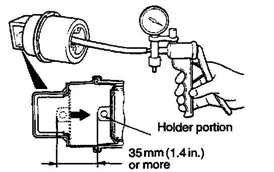 2. Using a vacuum pump, apply a negative pressure to the actuator to check that the holder portion moves more than 35 mm (1.4 in.). Retain the negative pressure in that state to check that the holder portion does not change its position.