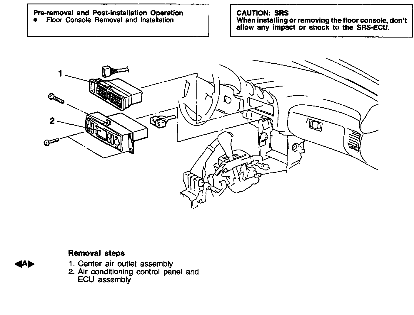 A CENTER AIR OUTLET ASSEMBLY REMOVAL