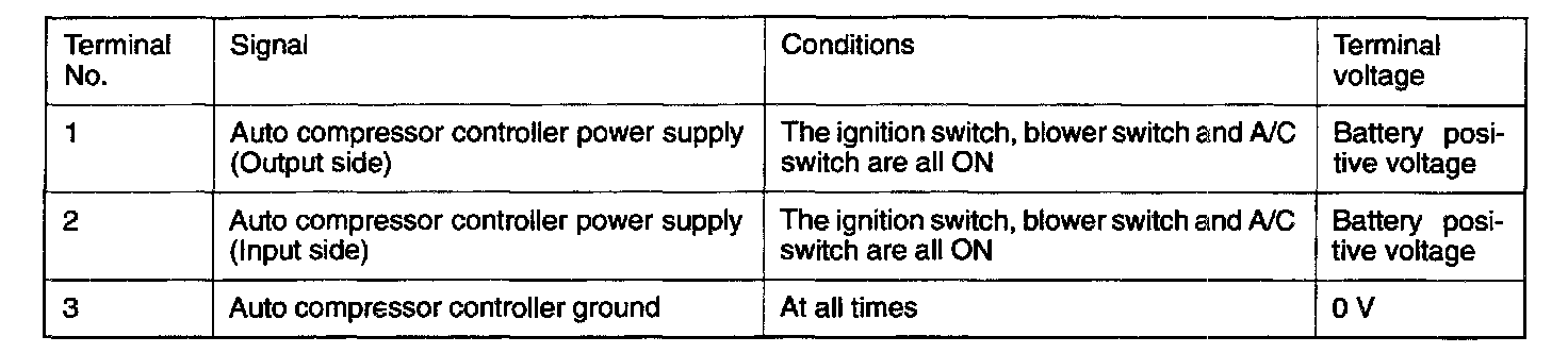 Disconnect the amplifier and inspect the connector on the wire harness side as shown in the chart.