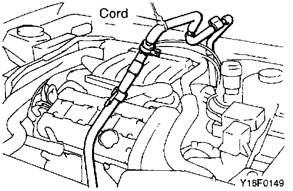 On vehicles with an air conditioning, remove the clamp nut, raise the suction hose and suspend it from the engine hood using a cord.