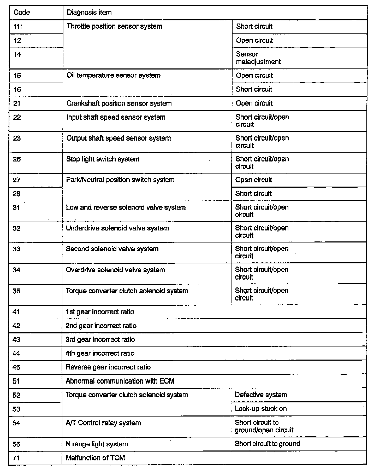 Diagnostic Trouble Code Descriptions