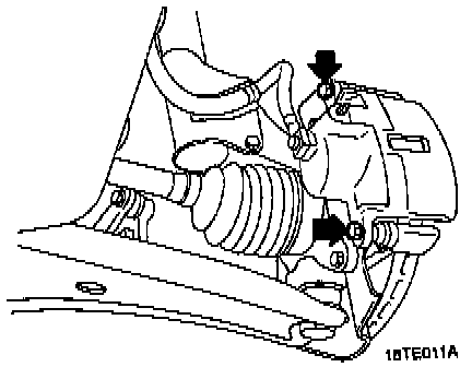 2. Remove guide pin. Lift caliper assembly upwards and support it with wires.