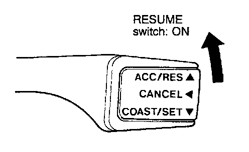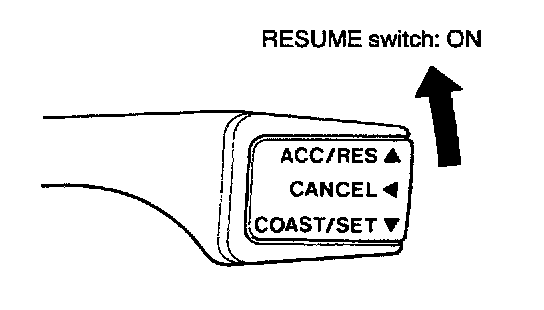 3. At a vehicle speed of 40 km/h (25 mph) or higher, check if when the RESUME switch is switched ON, vehicle speed returns to the speed before auto-cruise control driving was cancelled, and constant speed driving occurs.