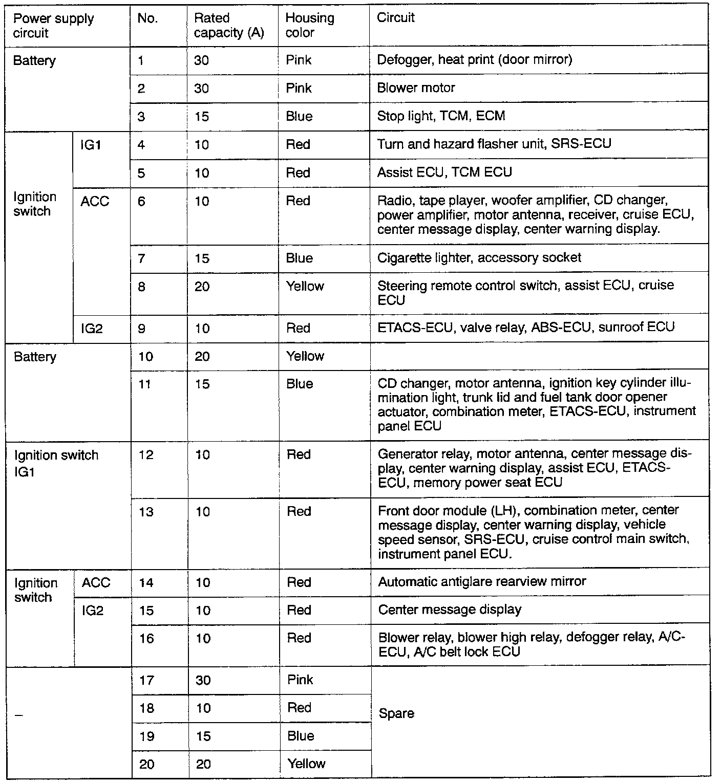 Multi-Purpose Fuses (In Junction Block)