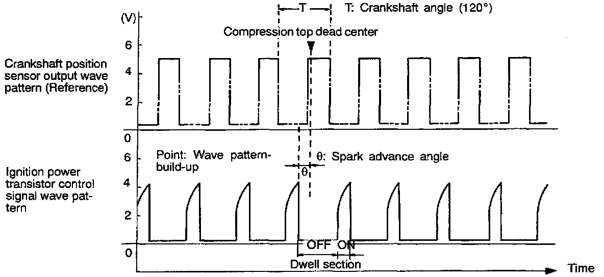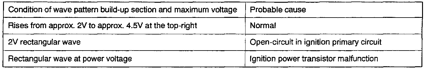 Condition of wave pattern build-up section and maximum voltage (Refer to abnormal wave pattern examples 1 and 2.)
