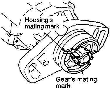 2. Align the distributor housing and gear mating marks and install the distributor.