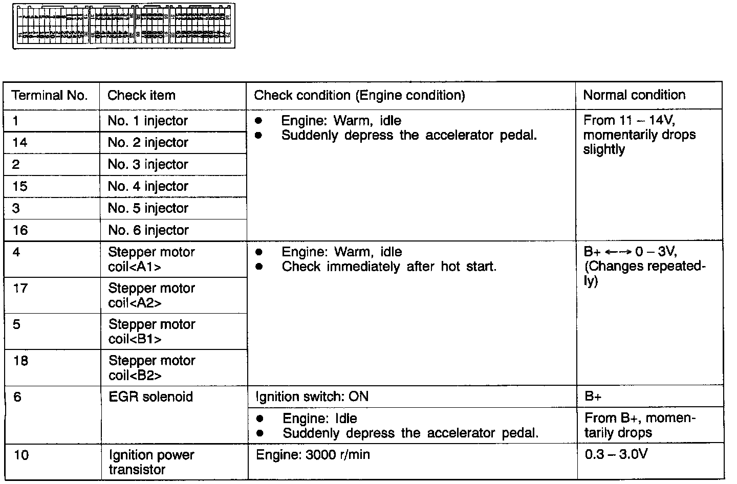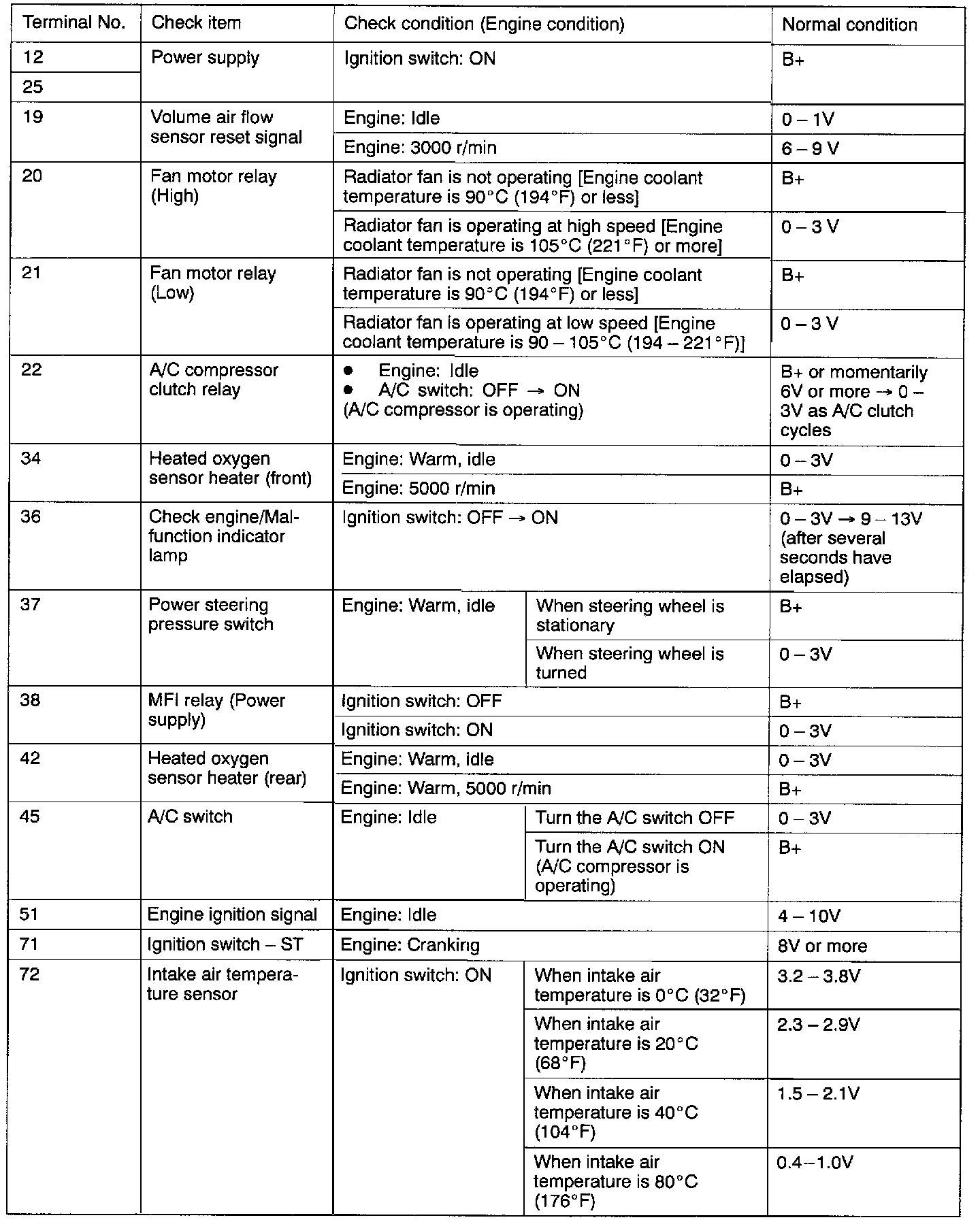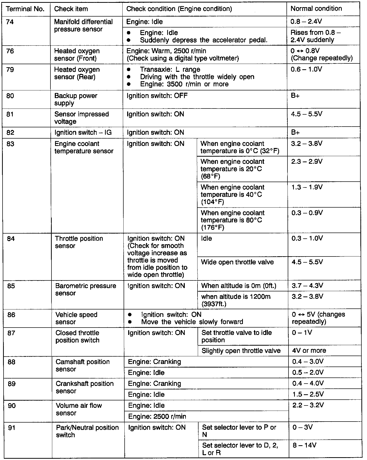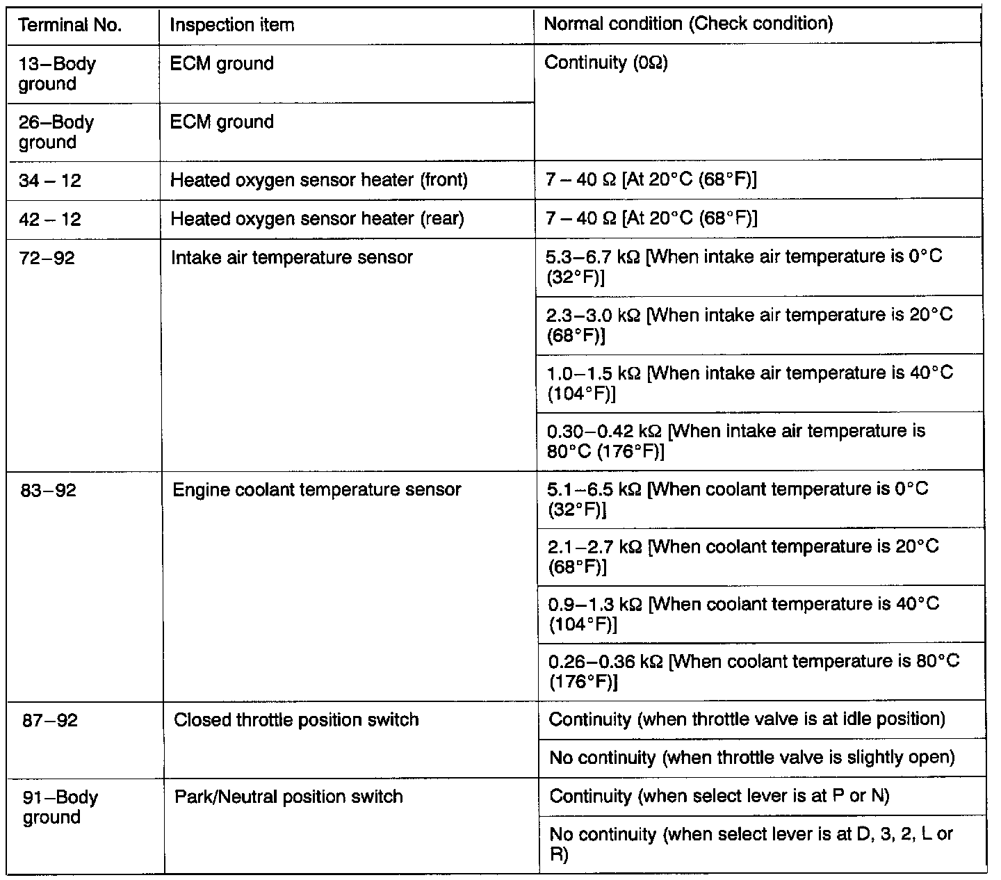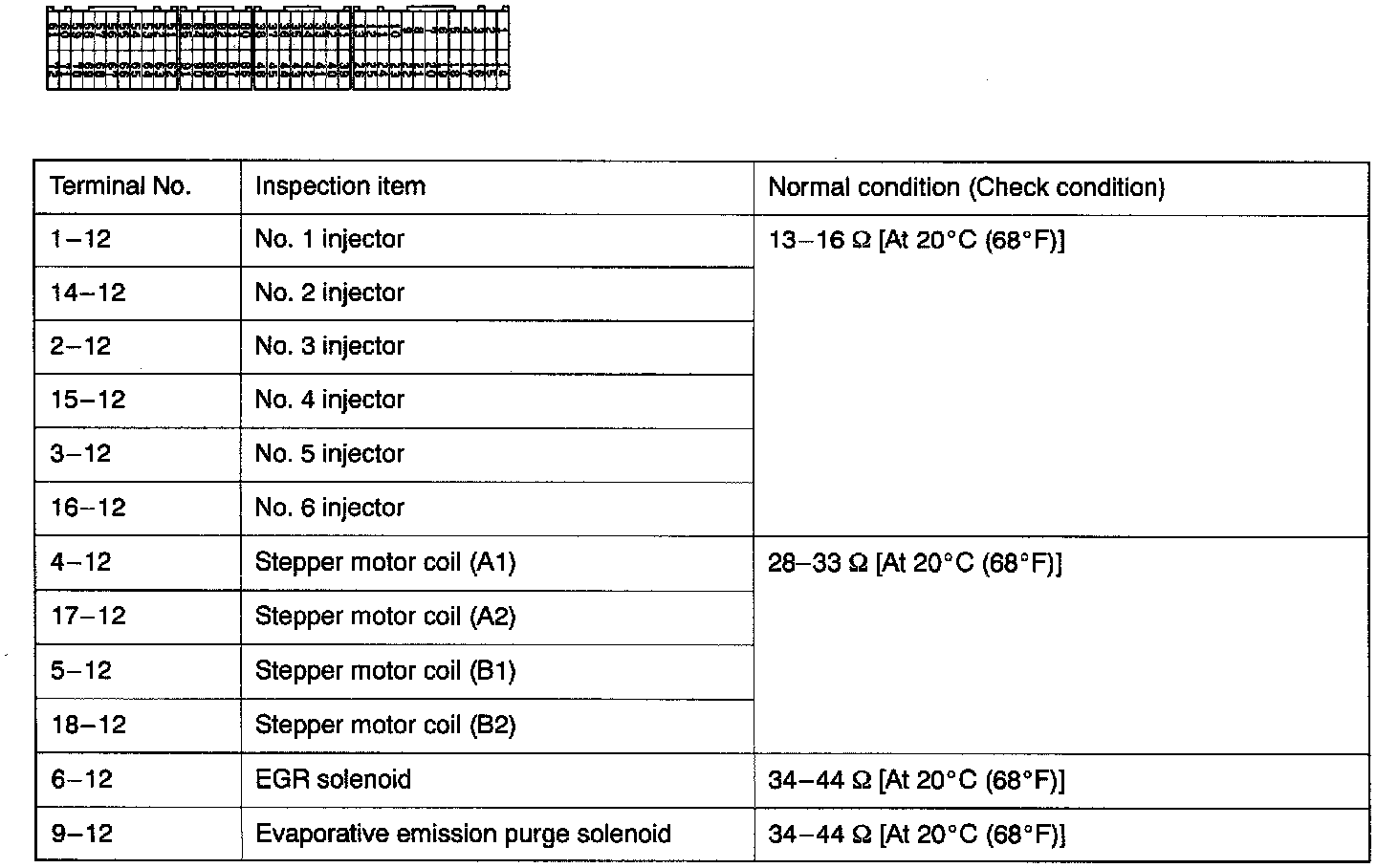 4. If the ohmmeter shows any deviation from the normal condition, check the corresponding sensor, actuator and related electrical wiring and then repair or replace.