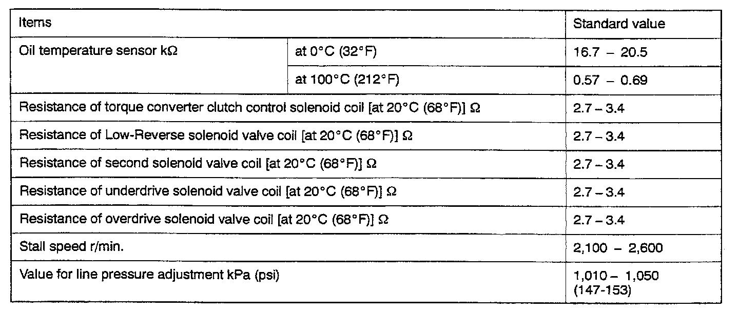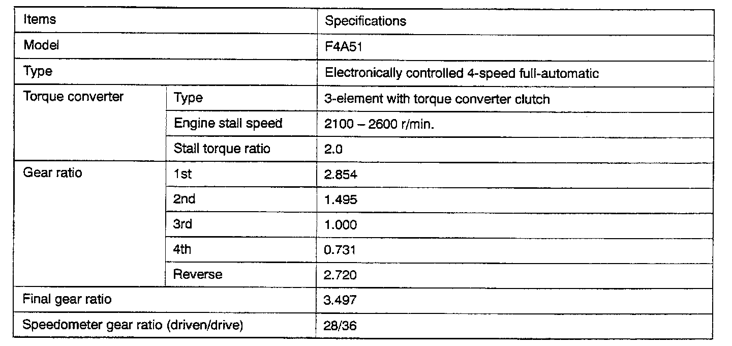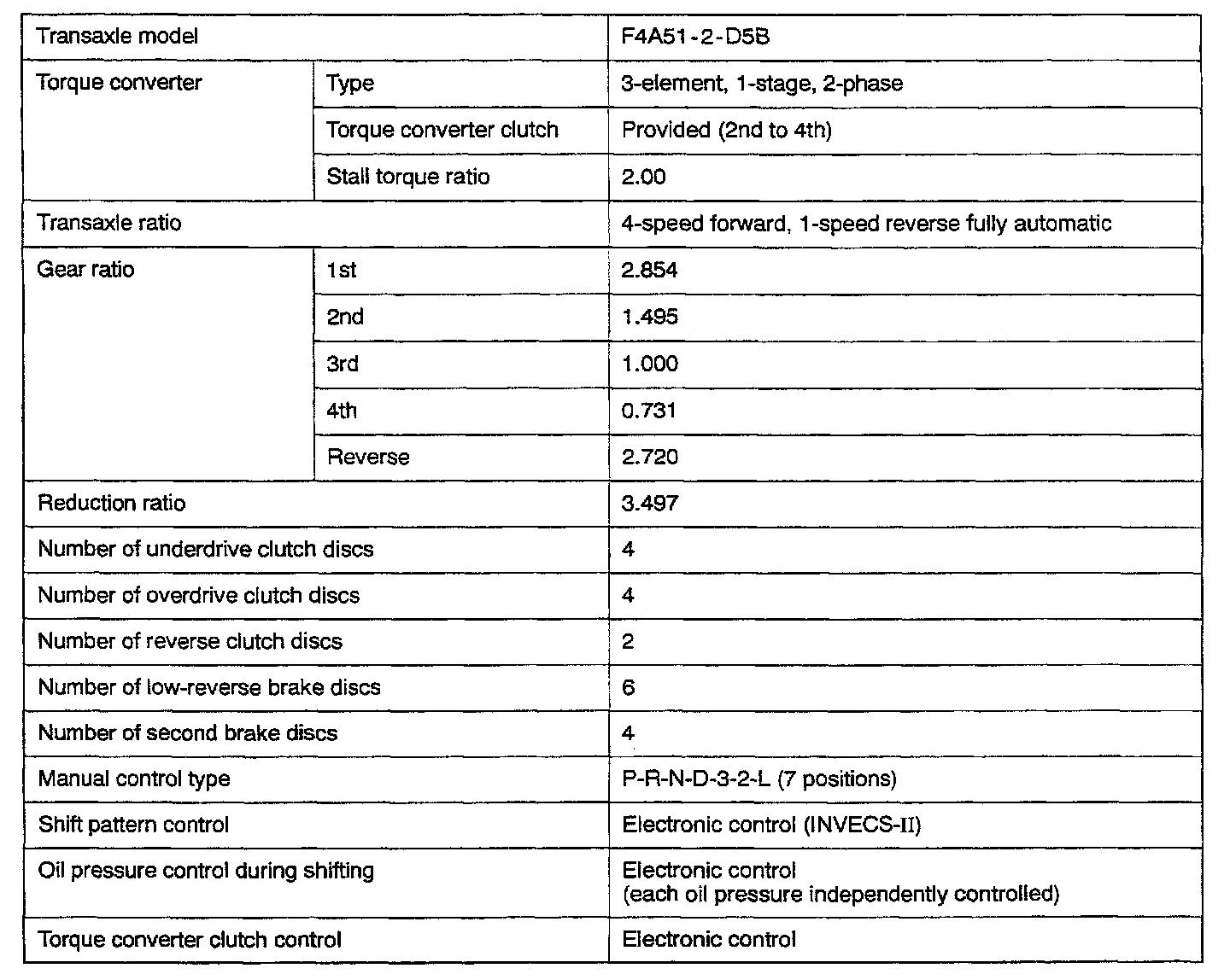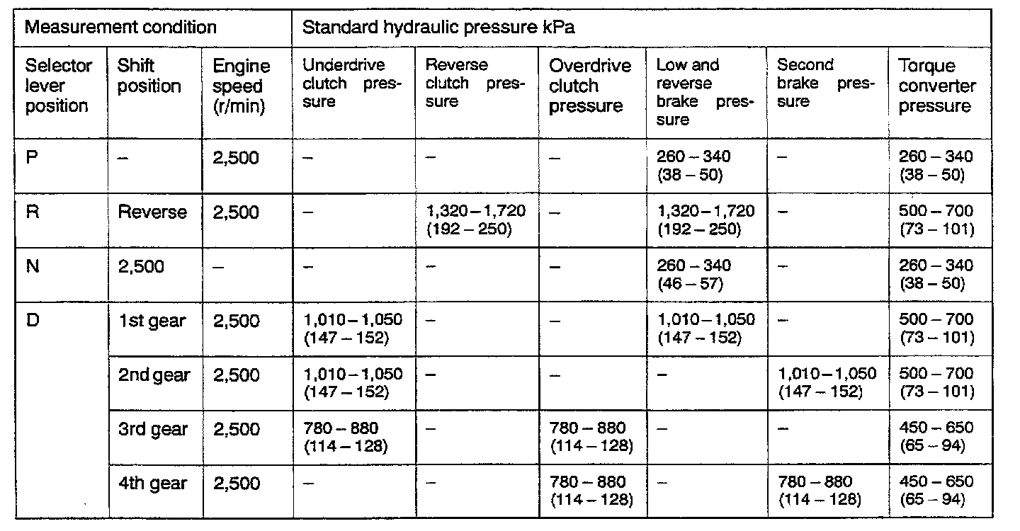 F4A51 4-spd A/T, Standard Hydraulic Pressure: