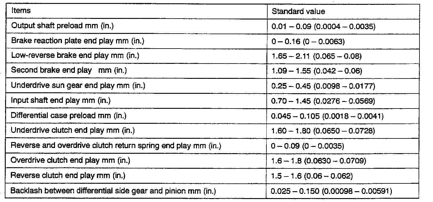 F4A51 4-spd A/T, Reverse Clutch End Play, Sun Gear& Output Shaft: