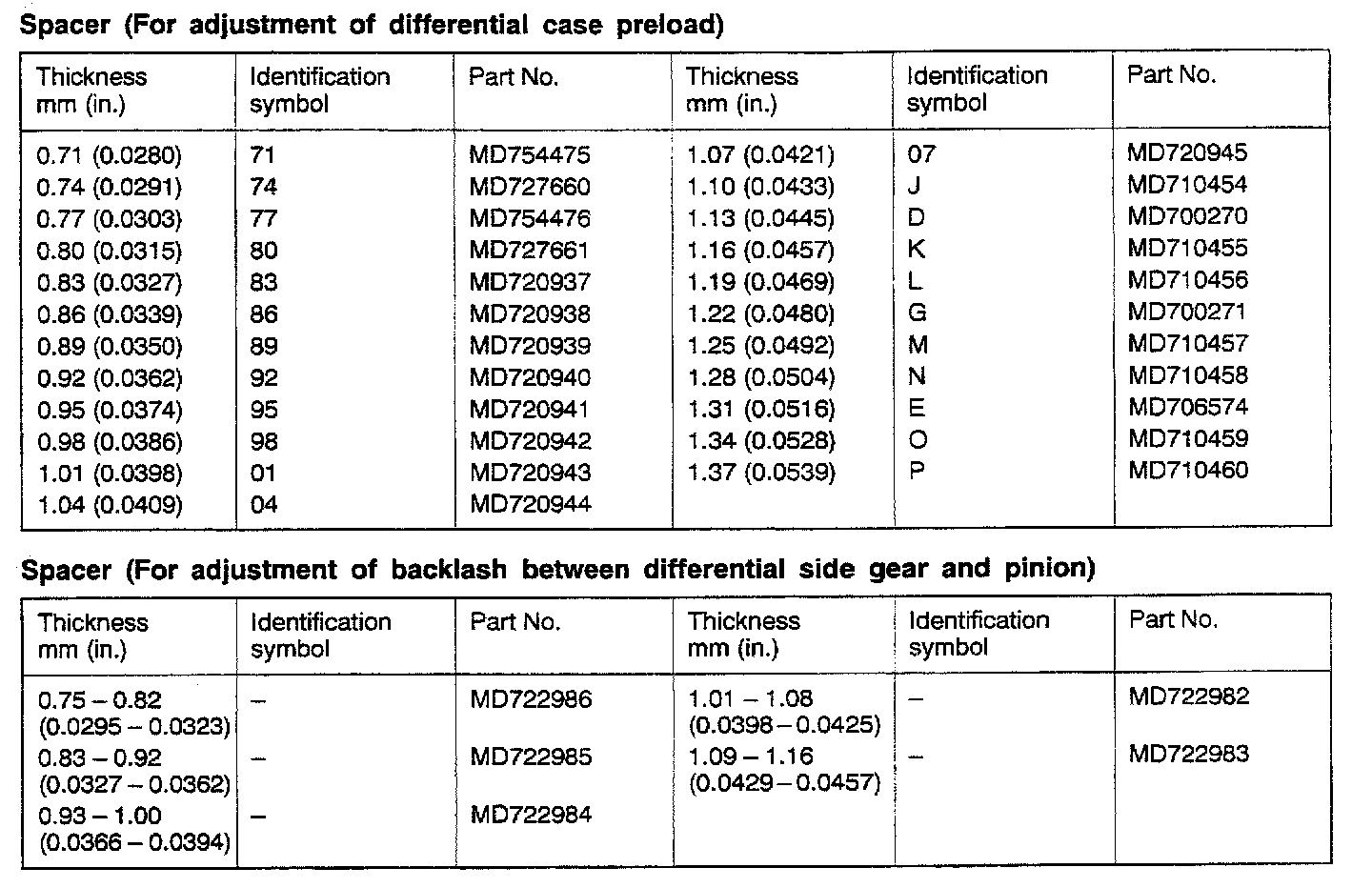F4A51 4-spd A/T, Differential Preload & Side Gear And Pinion Backlash:
