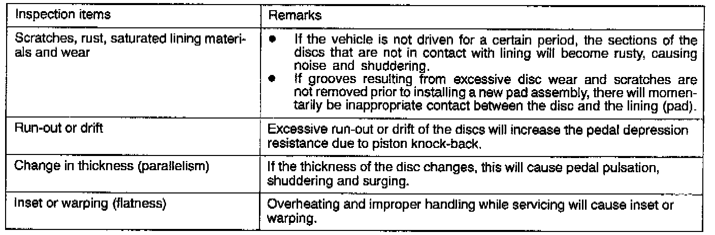 Before re-finishing or re-processing the brake disc surface, the conditions in the image should be checked.
