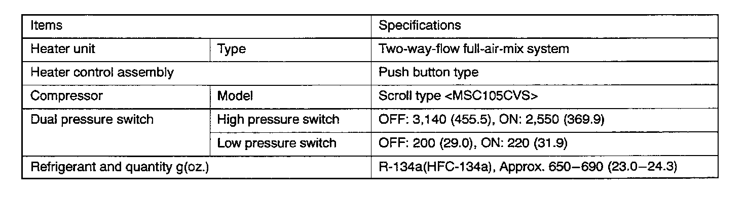 The heater system uses a two-way-flow full-air-mix system that features high performance and low operating noise, and includes an independent face air blowing function and a cool air bypass function.