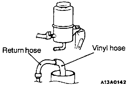 3. Connect a vinyl hose to the return hose, and drain the oil into a container.