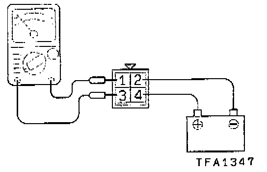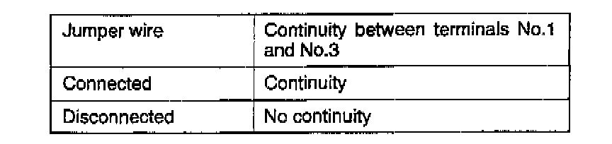 3. Check the continuity between the terminal (1) and the terminal (3)of the A/T control relay when the jumper wires are connected to and disconnected from the battery.