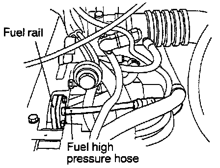 2. Disconnect the fuel high pressure hose at the fuel rail side.