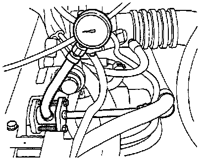 10. Check to see that fuel pressure at idle does not drop even after the engine has been raced several times.