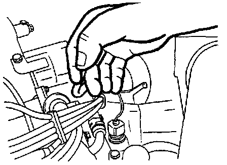 11. Racing the engine repeatedly, hold the fuel return hose lightly with fingers to feel that fuel pressure is present in the return hose.