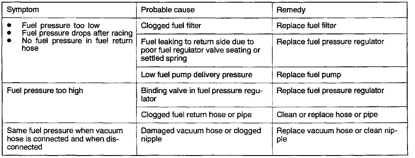 12. If any of fuel pressure measured in steps 8 to 11 is out of specification, troubleshoot and repair according to the image above.