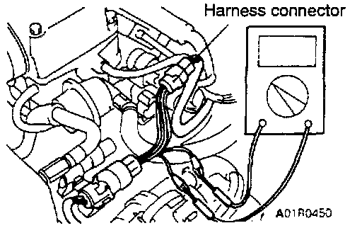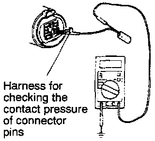2. If the connector is disconnected for checking and the facing part is the female pin side, the harness for checking the contact pressure of connector pins should be used. Never force the insertion of a test bar, because to do so will cause poor or improper contact.
