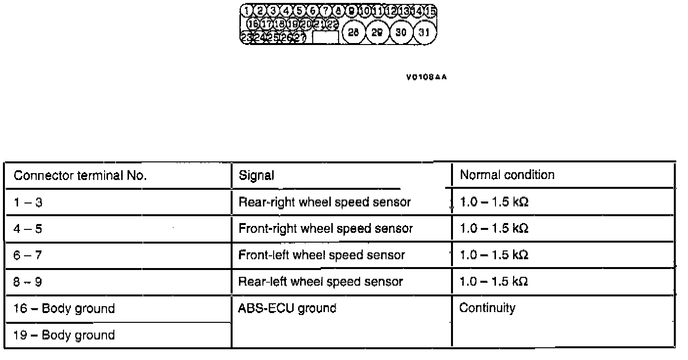 1. Turn the ignition switch off and disconnect the ABS-ECU connectors before checking resistance and continuity.