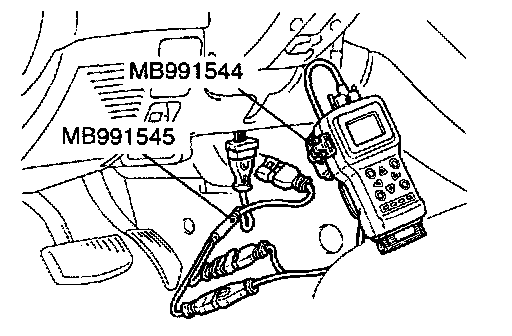 2. Use the special tools (MB991544 and MB991545) to connect the scan tool as illustrated.