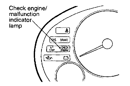 2. Count the number of times the check engine/malfunction indicator lamp on the instrument panel flashes ON and OFF. The number of flashes represents the trouble code. There is a slight pause between the flashes to separate the first and second digits of the code. Longer pauses between flashes separate individual trouble codes.