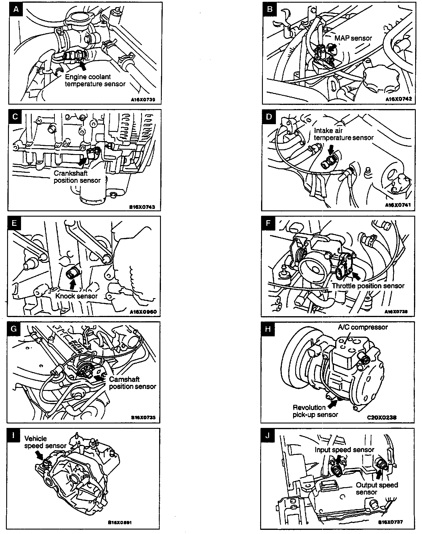 Sensor Locations Views A-J: