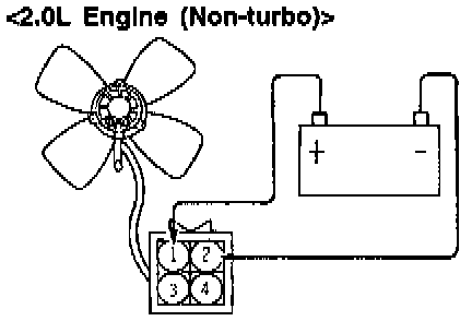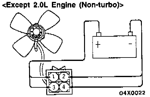 1. Check to be sure that the radiator fan rotates when battery voltage is applied between terminals.