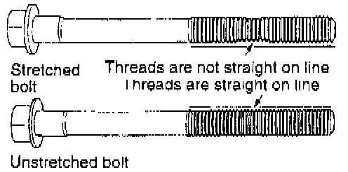 1. Cylinder head bolts should be carefully examined before reuse. If the threads are necked down, the bolts should be replaced.