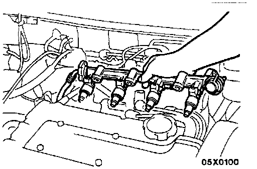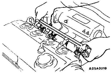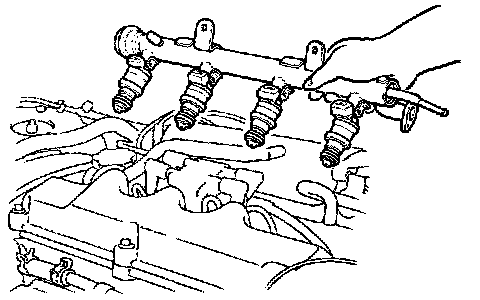 CAUTION: Do not drop fuel injector when removing fuel rail.