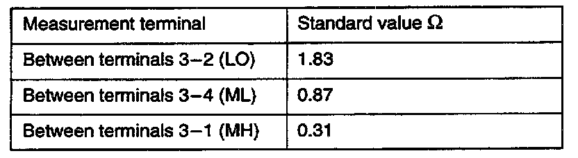 Use an ohmmeter to measure the resistance between the terminals as indicated. Check that the measured value is at the standard value.