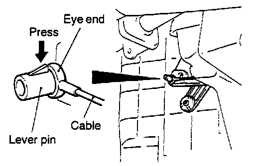 1. Press the lever pin to disconnect the air outlet changeover damper cable.