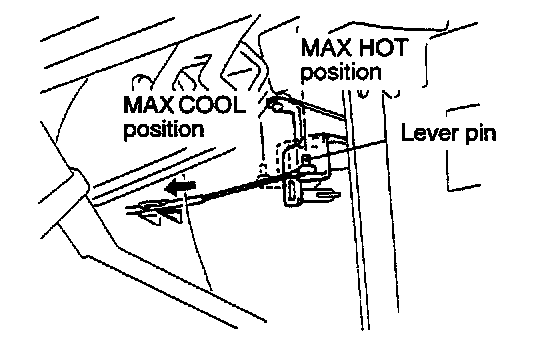 3. Set the air mix damper lever at the upper part of the heater unit to the MAX HOT position, and install the cable to the lever pin.