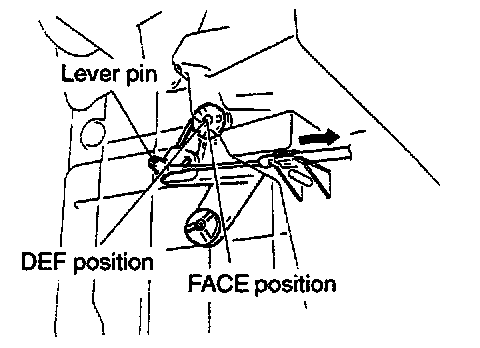 6. Set the air outlet changeover damper lever of the heater unit to DEF position and install the cable to the lever pin.