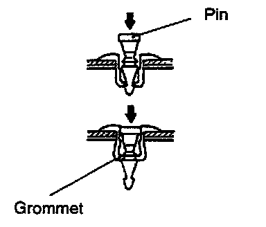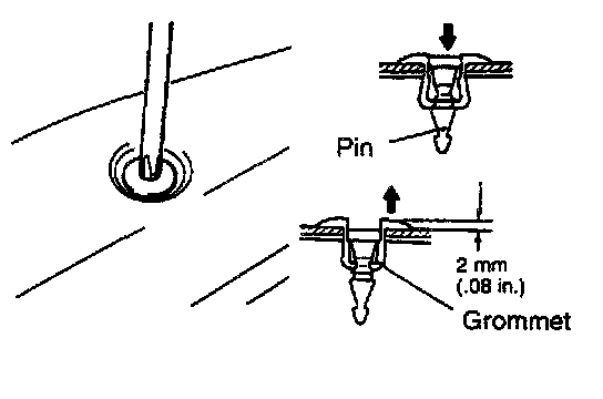 CAUTION: Do not push the pin inward more than necessary because it may damage the grommet, or the pin may fall in, if pushed too far.