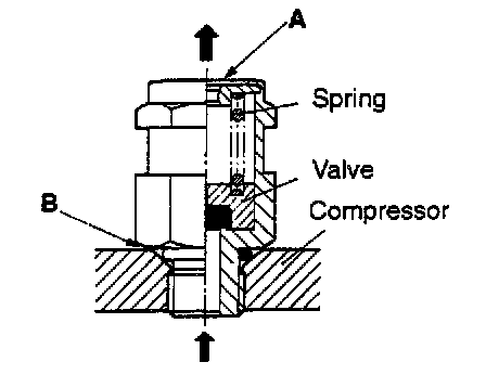 2. If a leak is detected at section B retighten the valve. If the leak persists after retightening the valve, replace the packing.