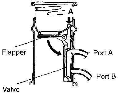 (2) Use a screwdriver or similar tool to push the flapper in order to close the valve, and then blow air into the hose. Check that the air does not flow out of the port B.