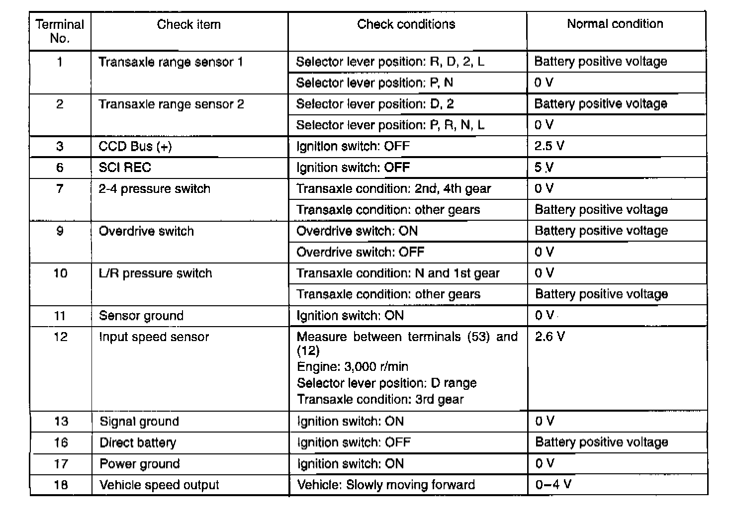 Pinout Values and Diagnostic Parameters