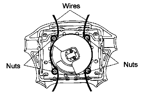 1. Install nuts that are no longer needed to the four bolts on the rear side of the air bag module, and tie on some thick wire to secure to the wheel.