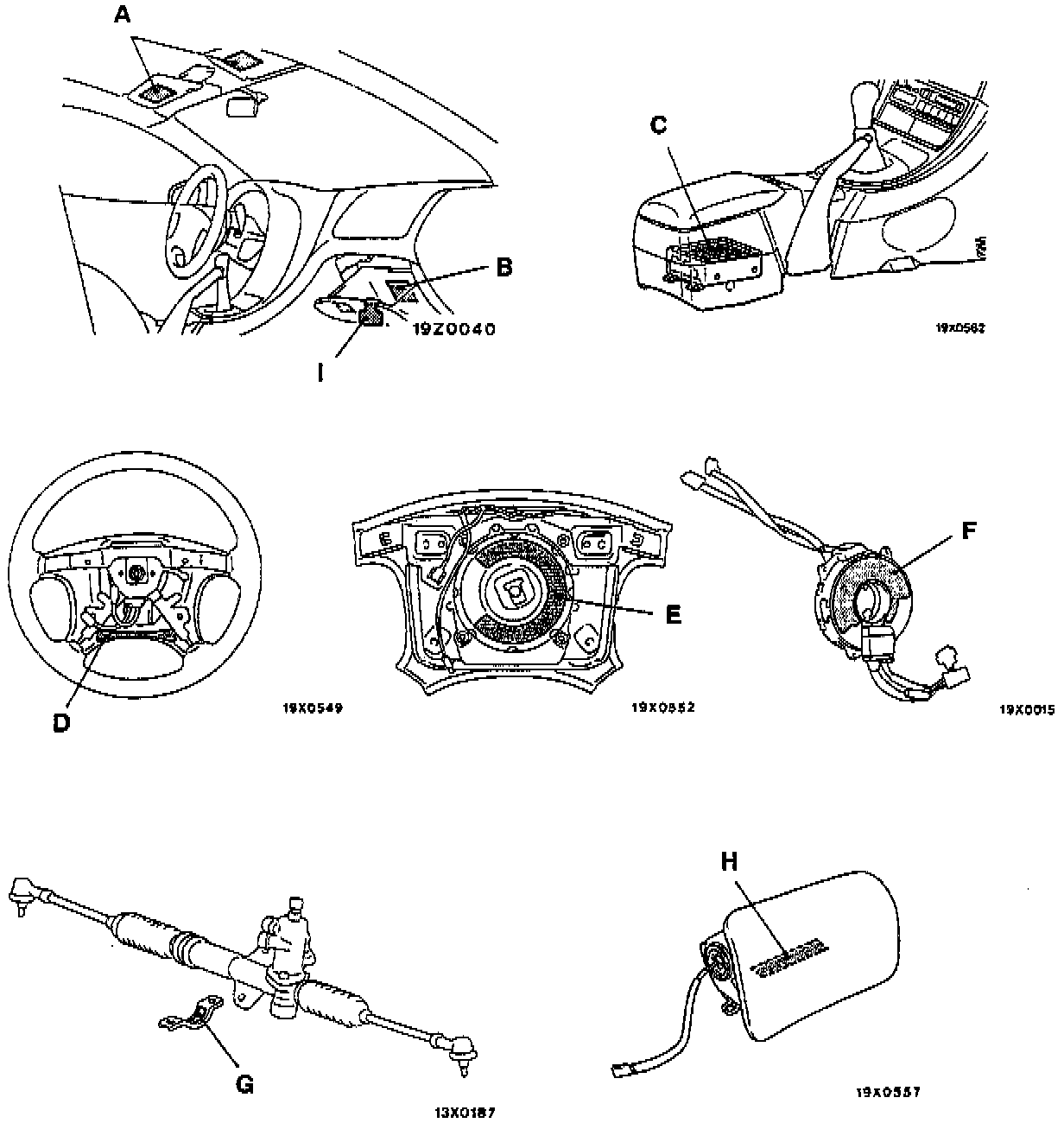 A number of caution labels related to the SRS are found in the vehicle, as shown in the following Illustration. Follow label instructions when servicing SRS.