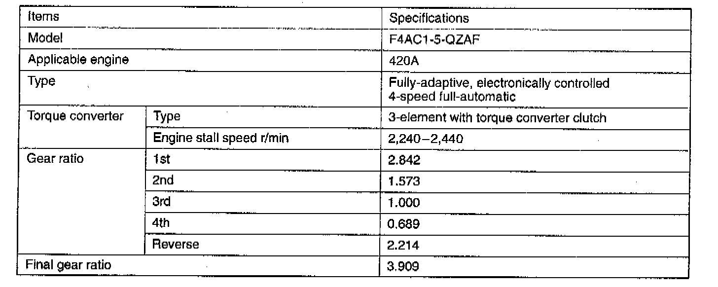 The automatic transaxle comes in one model, namely, F4AC1.