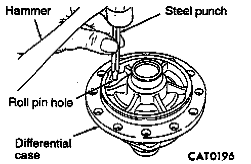 13. Remove pinion shaft roll pin by tapping out with a hammer and steel punch.