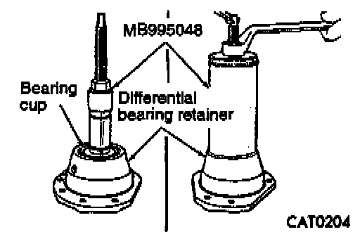17. Remove bearing cup with Cup Remover MB995048.