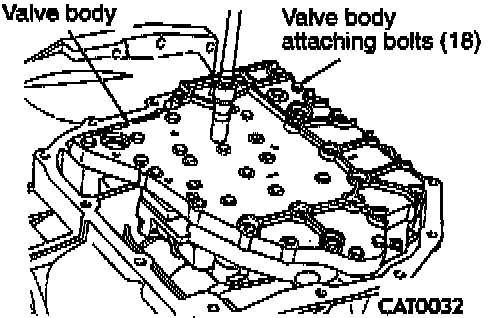 4. Remove valve body attaching bolts (18).