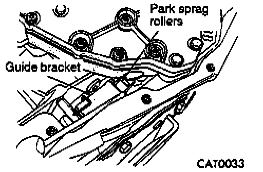 5. Use a screwdriver to push park sprag rollers away from guide bracket.